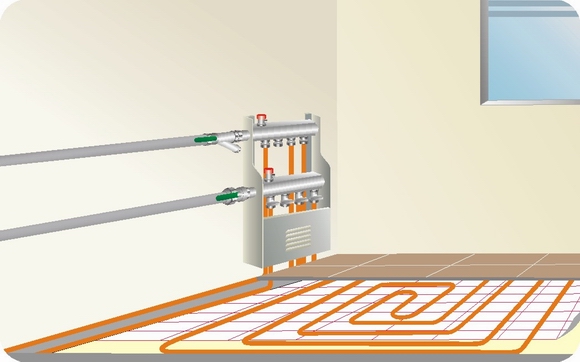 低溫?zé)崴匕宀膳?,是將加熱管埋設(shè)在地板中,以溫度不高于60℃的熱水為熱媒,加熱地面,并以此地面為散熱面,在加熱周圍空氣的同時(shí),還與四周的圍護(hù)結(jié)構(gòu)進(jìn)行輻射換熱,從而使室內(nèi)空氣和四周的圍護(hù)結(jié)構(gòu)表面溫度升高的一種采暖方式。