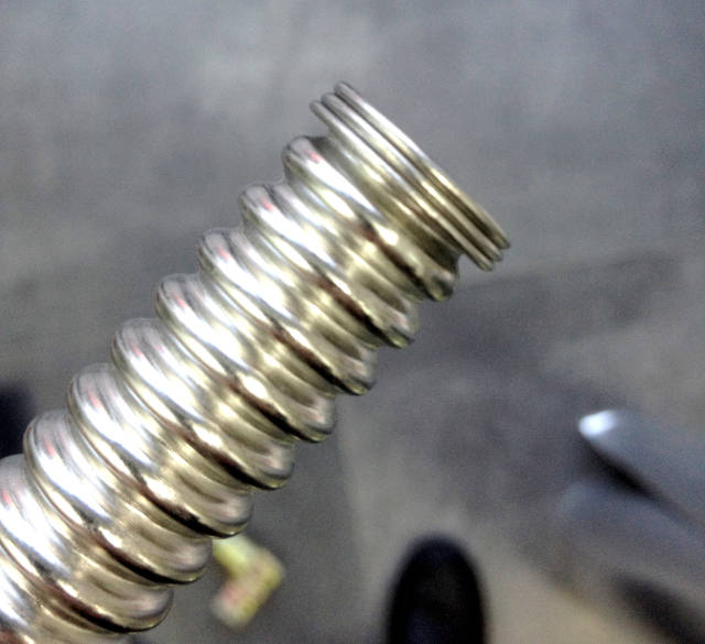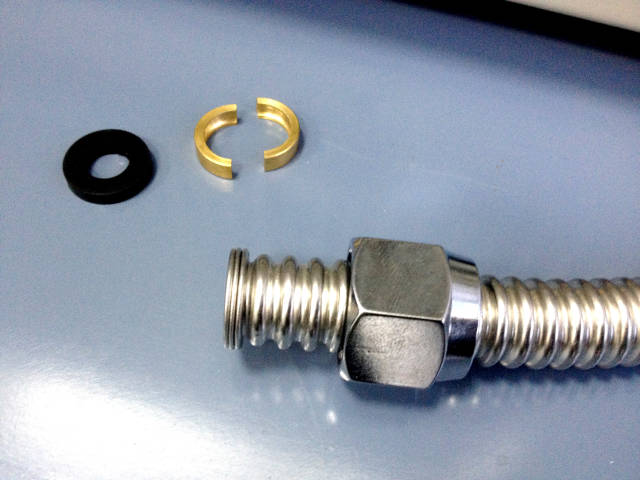 4、成形前部分套入螺母,成型后部分卡上銅箍和皮墊,如此,即完成了波紋管的選材及安裝,靈活省時(shí)省力,也相對(duì)經(jīng)久耐用,正在成為越來越多家庭的選擇。